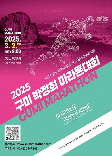 참가자들은 도심과 자연이 어우러진 풍경 속에서 달리며 구미의 대표적인 산업·문화 랜드마크를 만나는 특별한 경험을 누릴 수 있다. 참가 신청은 박정희 전 대통령 탄신 107돌을 맞는 11월 14일부터 홈페이지(www.gumimarathon.com) 오픈과 함께 시작됐으며 1만 명 규모로 모집한다.