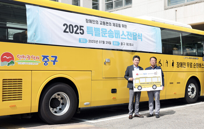 이번에 전달된 ‘장애인특별운송버스’는 인천시와 중구의 예산을 투입해 마련된 39인승 대형 승합차다. 구는 이 차량을 영종장애인종합복지관에 무상으로 대부하고, 복지관 주관으로 운영하게 할 방침이다.