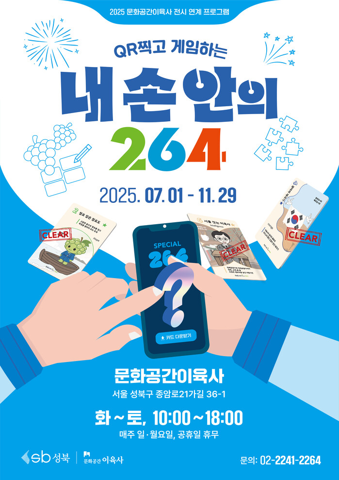 [시민일보 = 문민호 기자] 성북구(구청장 이승로) 문화공간이육사가 오는 7월 1일 화요일부터 전시 연계 프로그램 ‘내 손 안의 264’를 진행한다.
