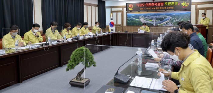 이날 토론훈련은 합천군수 주재로 재난안전대책본부 13개의 협업부서와 8개의 유관기관 및 단체(합천소방서, 합천경찰서, 한전 합천지사, KT 거창지사, 지역자율방재단, 의용소방대, 주부민방위기동대, 삼성합천병원) 등이 참여한 가운데 진행됐다.