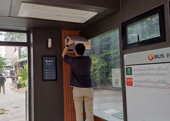 | ▲ 버스승강장 냉방시설을 점검하는 모습 |