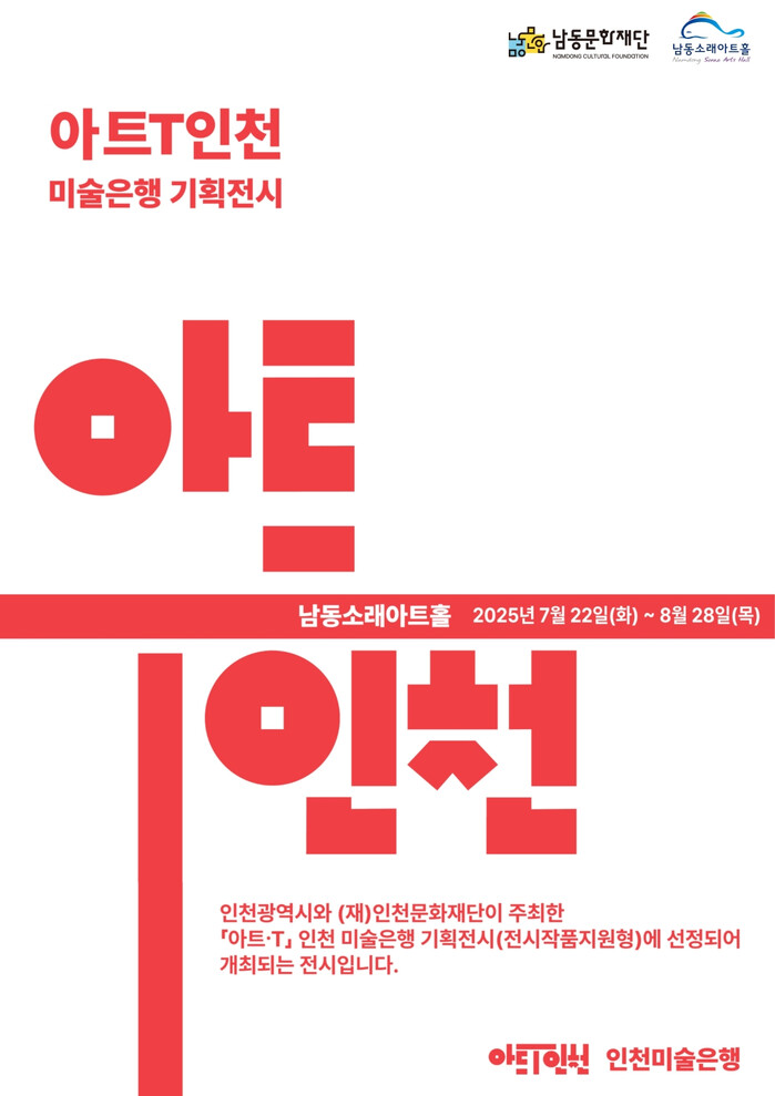 재단 관계자는 “이번 ‘아트·T 인천’ 전시는 인천지역 작가들의 작품을 구민들에게 소개함으로써 지역 미술에 대한 관심과 인지도를 높이는 계기가 될 것”이라며 “남동구 주민들이 생활 속에서 자연스럽게 문화예술을 접할 수 있도록 함으로써 전시문화 확산과 문화 향유권 증진에도 도움이 되길 바란다”라고 전했다.