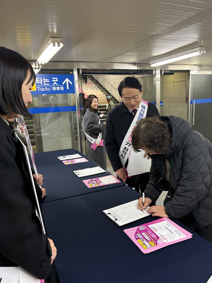 이번 행사는 지하철을 이용하는 시민들에게‘해사법원 유치 서명운동’에 적극 동참해 줄 것을 호소하는 형태로 진행됐다.
