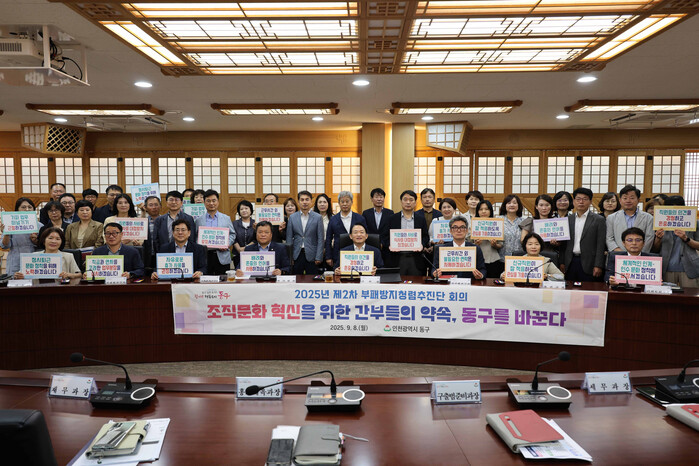 [인천=문찬식 기자] 인천 동구(구청장 김찬진)는 8일 구청 갈매기홀에서 청렴 동구 구현을 위한‘2025년 제2차 부패방지 청렴추진단 회의’를 개최했다고 밝혔다.