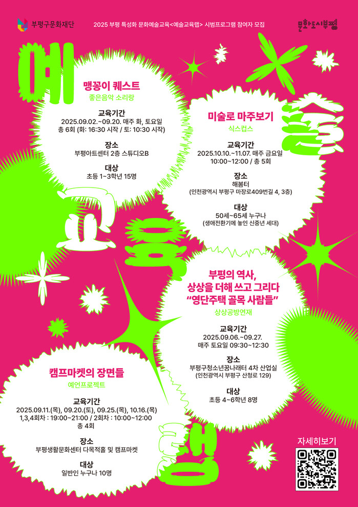 자세한 사항은 부평구문화재단 누리집을 확인하거나 전화로 문의하면 된다.