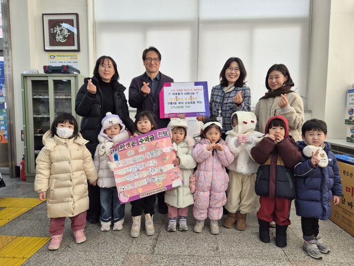 기부금은 우리누리어린이집 원아들이 나눔의 가치를 실천하기 위한 바자회 행사를 통해 마련한 수익금으로, 추운 겨울 경제적 어려움을 겪고 있는 취약계층을 위해 사용될 예정이다.