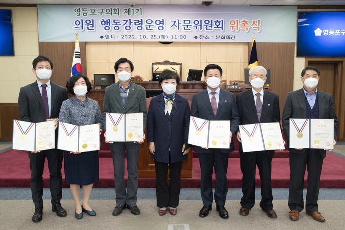 [시민일보 = 여영준 기자] 서울 영등포구의회(의장 정선희)가 최근 의회 본회의장에서 행동강령 자문위원회 위촉식을 했다.