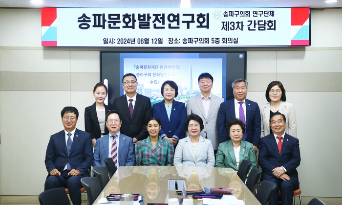 [시민일보 = 이대우 기자] 서울 송파구의회 의원연구단체 ‘송파문화발전연구회’는 최근 송파구의회 5층 회의실에서 송파구의 문화발전을 위한 방안 모색을 위한 ‘제3차 정책간담회’를 개최했다.