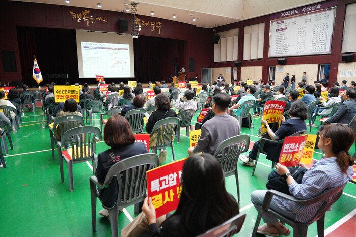 이날 설명회에 참석한 입주자 대표는 “안전성이 객관적으로 증명되지 않은 상황에서 약 3000가구가 살고 있는 주거지 앞에 변전소를 설치하겠다는 데 누가 동의할 수 있는가”라며 “이미 몸이 망가진 이후에 주어지는 보상은 무의미하며, 고압 전류가 흐르는 만큼 화재 발생 시 대형 인명피해로 이어질 수 있는 가능성도 높다”고 변전소 설치의 불합리함에 대해 토로했다.