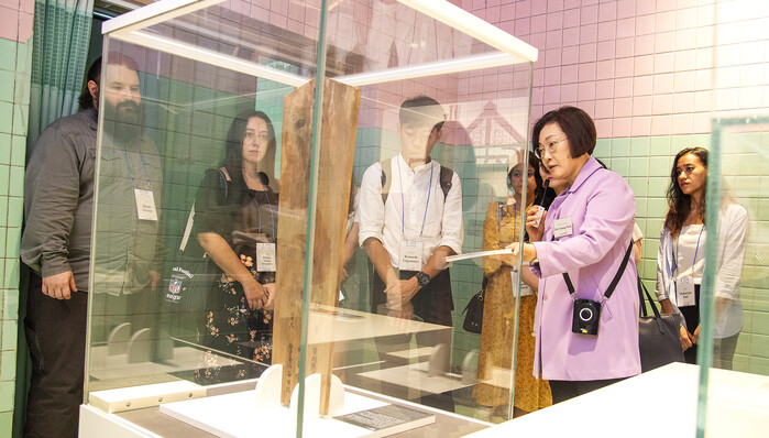 이어 박희영 구청장이 1일 영어 도슨트로 나서 '프롤로그-용산에 모이다-용산에서 흩어지다-인터섹션-용산으로 이어지다-용산에서 하나되다-에필로그' 순으로 안내했다.