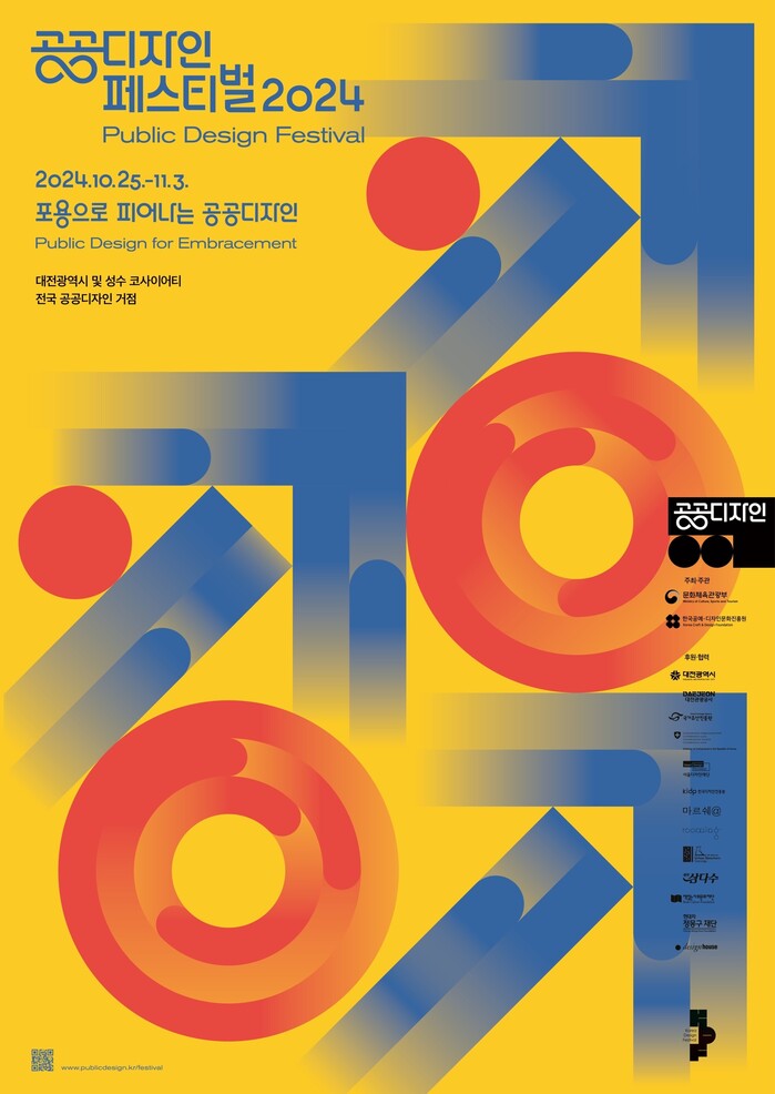 문화체육관광부(장관 유인촌, 이하 문체부)는 한국공예·디자인문화진흥원(원장 장동광, 이하 공진원)과 함께 10월 25일부터 11월 3일까지 대전을 중심으로 전국 180여 곳에서 ‘공공디자인 페스티벌 2024’를 개최한다.