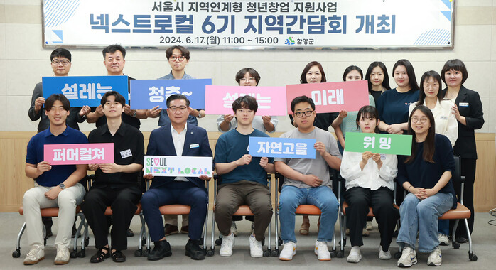이날 열린 지역 간담회는 넥스트로컬 6기 청년창업팀에 참여한 서울 청년 3팀 6명과 함양군, 서울시 관계자, 지역파트너 등 20여 명이 참석한 가운데 청년창업팀의 아이템 소개와 지역파트너와 간담회 등의 순으로 진행됐다.