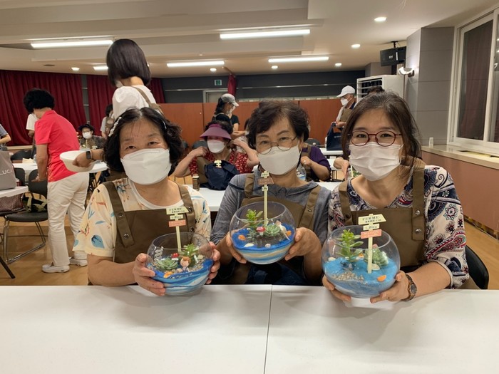 서울 서초구 방배1동 주민센터는 최근 저소득 홀몸노인을 대상으로 심리적·정서적 안정지원을 위한 원예치료 프로그램 '푸르른 행복 나눔 반려화분 만들기' 행사를 개최했다. 전문강사를 초빙해 반려식물 화분을 만들고 반려식물에 애칭부여하기 등 반려식물과 교감을 나누며 힐링할 수 있는 과정으로 구성됐다. 사진은 이날 참여 노인들이 기념촬영을 하고 있는 모습. (사진제공=서초구청)