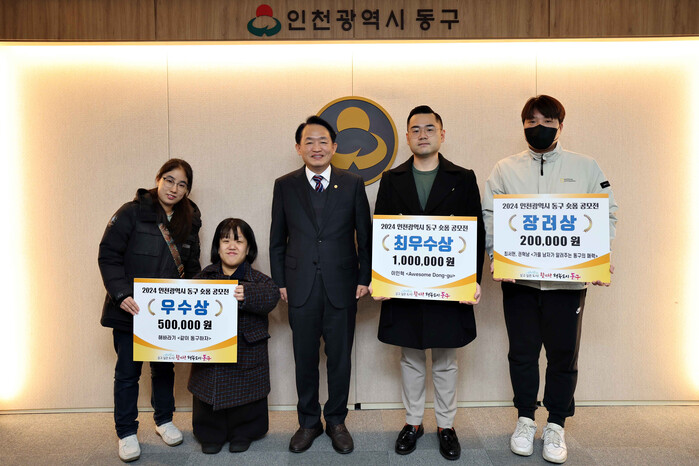 [인천=문찬식 기자] 인천 동구(구청장 김찬진)는 16일 구청 접견실에서 ‘2024 인천 동구 숏폼 영상 공모전’ 수상자들을 대상으로 시상식을 개최했다고 밝혔다.