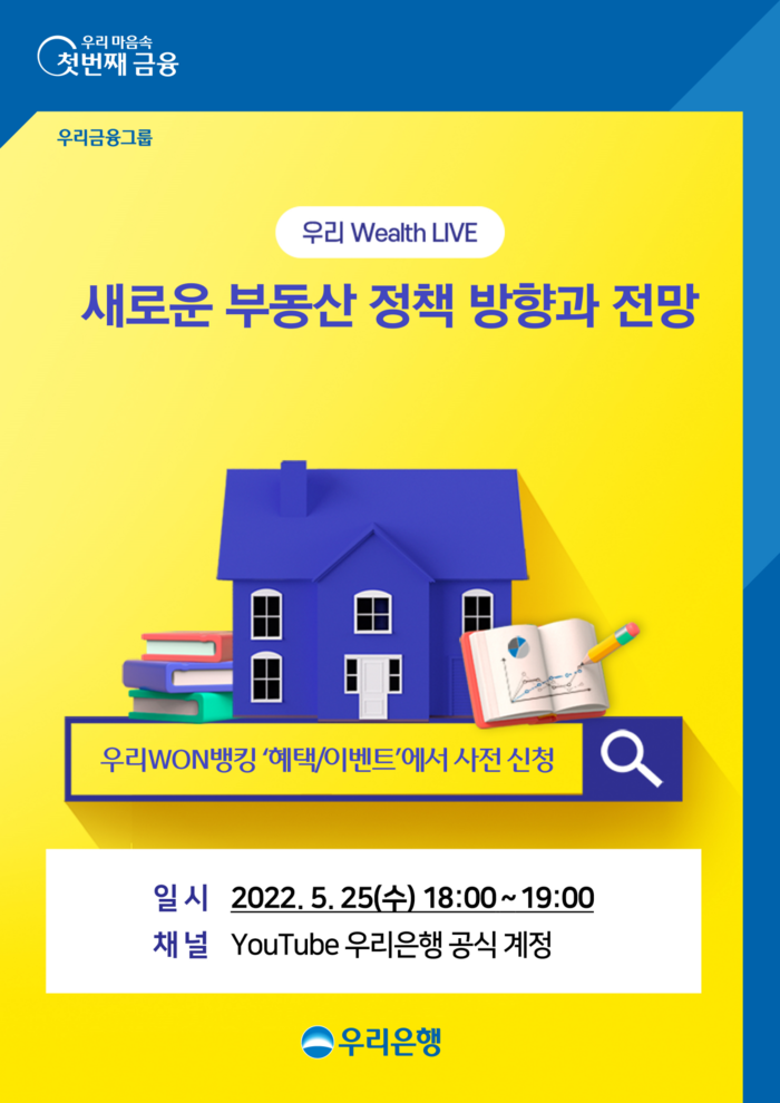 [시민일보 = 홍덕표 기자] 우리금융지주 자회사 우리은행이 오는 25일 오후 6시에 유튜브를 통해 언택트 자산관리 세미나 '우리 Wealth LIVE'를 개최한다.