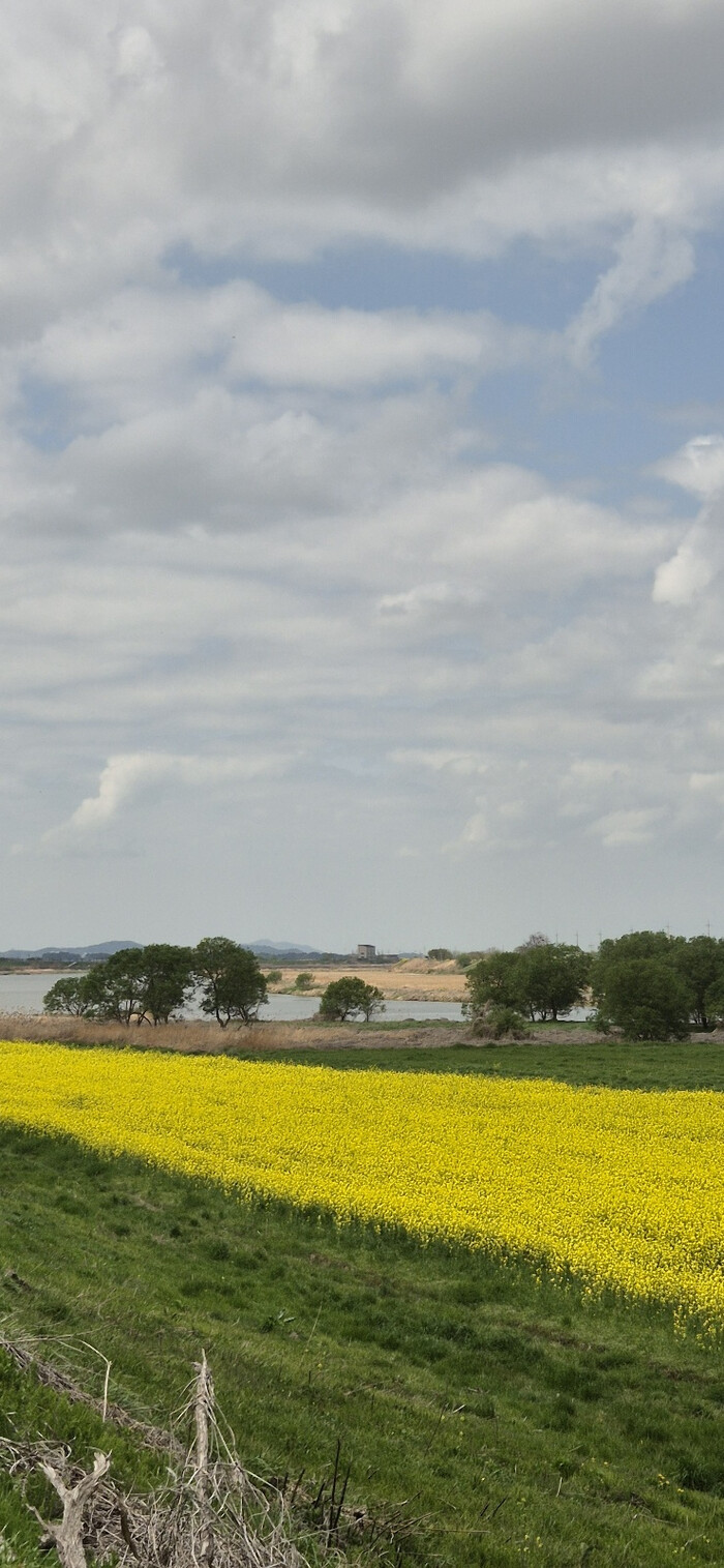 정읍시에서 신태인읍으로 흐르는 동진강을 따라가다 보면 신태인읍 인근에 식재한 유채가 활짝 꽃을 피웠다.