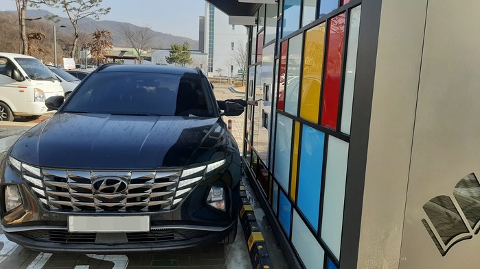 | 드라이브스루 율봉스마트도서관 차량 이용 사진 |