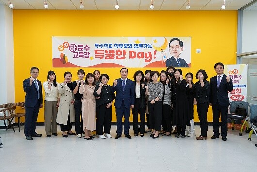 하윤수 부산광역시교육감이 12일 오전 11시 시교육청 별관 1층 소통공감실에서 특수학교 학부모연합회 학부모 15명, 교육청 관계자 등이 참석한 가운데 열린 ‘특수학교 학부모와 함께하는 특별한 만난 Day!’ 행사에 참석했다.