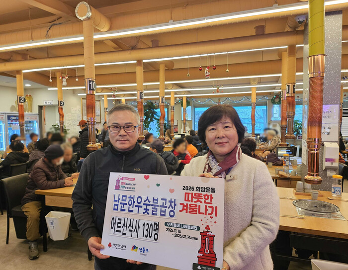 양승호 남문한우숯불곱창 대표는 “항상 지역사회를 생각하며, 어르신들께 작게나마 정성과 온기를 전하고 싶었다”라며 “앞으로도 주변 이웃들이 따뜻한 겨울을 보내실 수 있도록 꾸준히 나눔을 이어가겠다”라고 전했다.