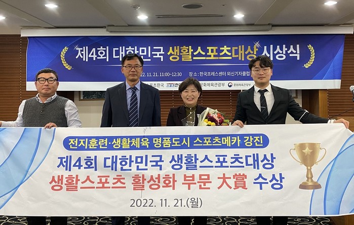 이와 같이 전국 규모의 스포츠 대회를 유치·운영하며 자신감을 얻은 강진군은 지난 21일 한국 프레스센터에서 개최된 제4회 대한민국 생활스포츠 대상 시상식에서 ‘생활스포츠 활성화 부문’ 대상의 영예를 안았다