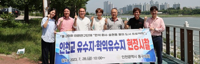 [인천=문찬식 기자] 인천 동구의회 의원 연구단체 ‘만석·화수·송현동 물의 도시 프로젝트’가 최근 유수지 주변 환경점검과 빗물펌프장 시설점검 및 유사지역 비교 시찰을 위해 동구 인천교 유수지와 미추홀구 학익 유수지를 방문했다.
