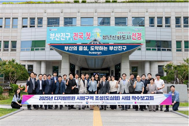 착수보고회(이하 보고회)는 지난 5월23일 부산진구청 5층(공유의방)에서 열렸다. 보고회에는 ▲과학기술정보통신부 ▲디지털플랫폼정부위원회 ▲한국지능정보사회진흥원, 그리고 시 컨소시엄으로 ▲한국국토정보공사(디지털트윈처, 부산울산지역본부) ▲부산정보산업진흥원 ▲동아대학교 ▲에이에스티(AST)홀딩스 ▲올포랜드 ▲이든티앤에스 ▲가이아쓰리디가 참석했다.