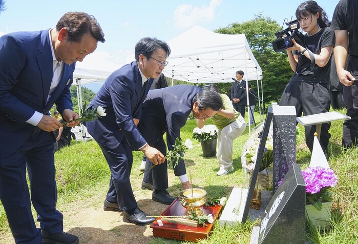 | ▲ 강기정 광주광역시장이 5일 오후 북구 망월동 민족민주열사묘역에서 진행된 '제37주기 이한열 열사 추모식'에 참석해 헌화를 하고 있다./광주광역시 제공 |