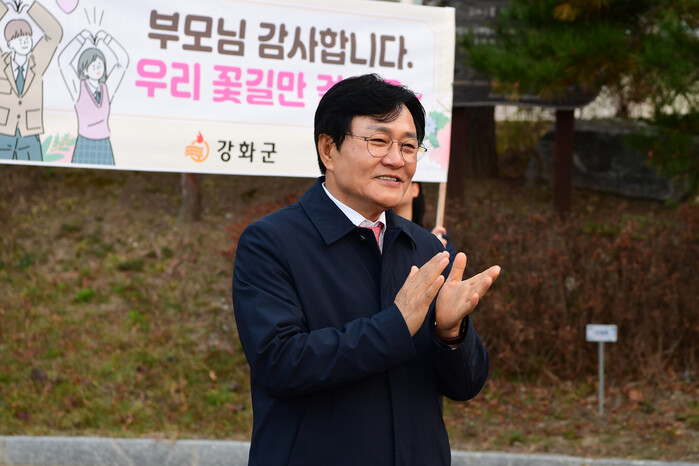 박 군수는 이른 아침부터 강화고·강화여고 관내 수능장 두 곳을 돌며 ‘여러분의 노력은 오늘 빛날 것입니다’라는 격려 피켓을 들고, 수험생들에게 격려를, 학부모들에게는 감사의 마음을 전달했다.