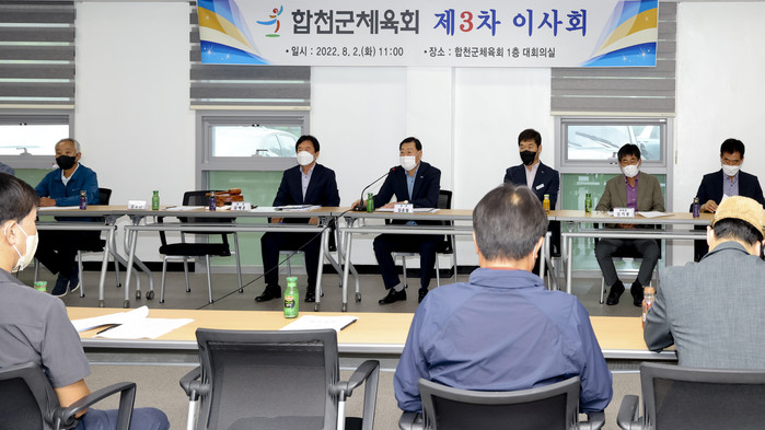 이날 이사회에서는 김윤철 합천군수, 체육회 이사와 부회장 32명이 참석한 가운데 오는 26일부터 나흘간 열릴 제61회 경상남도민체육대회 출전계획 보고하고, 읍‧면체육회의 합천군체육회 정회원 단체 가입을 위한 규정 제정을 심의하는 절차로 진행됐다.