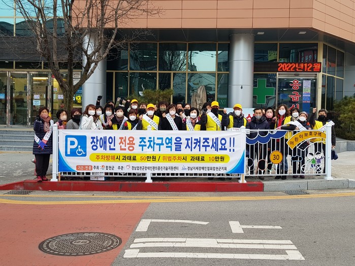 이번 캠페인에는 장애인편의증진센터(센터장 김홍기) 주관으로 군 지체장애인협회 회원을 비롯한 장애인활동지원사, 군청 공무원 등 40여 명이 참석하여 장애인전용주차구역 주요 위반 사항과 과태료, 신고요령 등을 알려주는 안내문과 홍보물품을 배부했다.