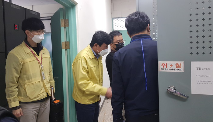 경기 동두천시는 최근 '2021년 국가안전대진단 중간점검 회의'를 개최하고, 코로나19로 그동안 시설 운영을 중단했던 종합운동장 시설물 현장점검을 실시했다. 사진은 이날 전진석 부시장(왼쪽 두 번째)이 분야별 민간전문가 및 시설 담당자와 함께 점검을 실시하고 있는 모습. (사진제공=동두천시청)
