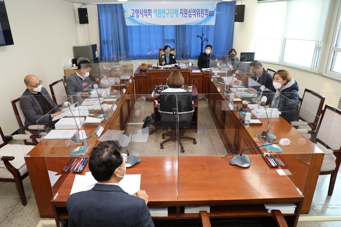 [고양=이기홍 기자] 경기 고양시의회가 지난 23일 의회운영위원회 회의실에서 의회운영위원회 위원들과 의원 연구단체 대표의원들이 참석한 가운데 의원 연구단체 심의위원회를 열고 1년간의 연구 활동 결과를 심의했다.