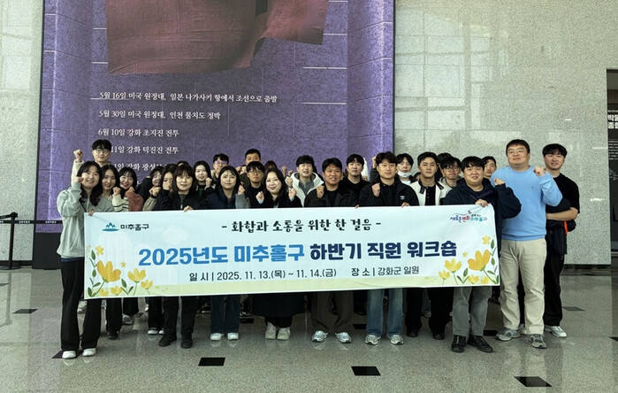 [인천=문찬식 기자] 인천 미추홀구(구청장 이영훈)는 지난 13일부터 이틀간 강화군 일대에서 직원 48명을 대상으로 ‘하반기 직원 워크숍’을 실시했다.