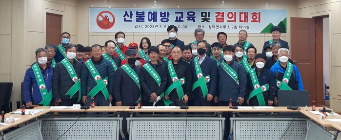 교육이 끝난 뒤에는 산불예방실천 결의문에 서명하고 낭독하며 산불없는 청덕면 만들기에 앞장설 것을 다짐하는 결의대회를 가졌다.