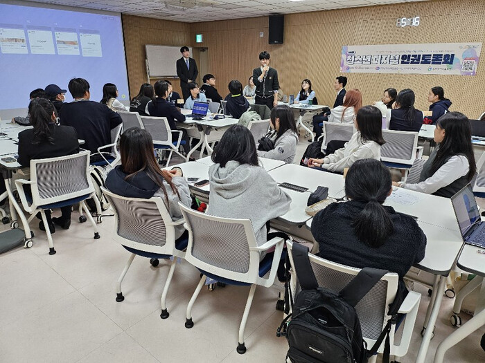 이번 토론회에는 인천 관내 중·고등학교 학생 30명이 참여했으며, 푸른나무재단 사이버SOS센터 국제팀장이 강사로 나서 디지털 인권 현안을 주제로 강연과 토론을 진행했다.