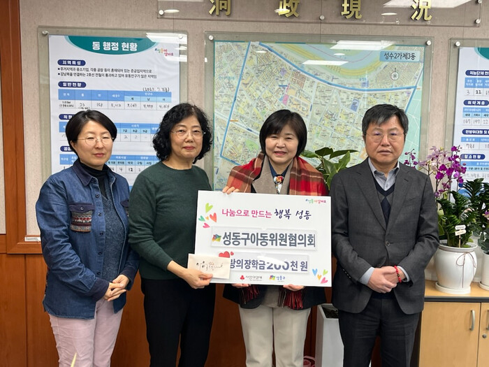 [시민일보 = 박소진 기자] 서울 성동구(구청장 정원오) 아동위원협의회에서 최근 지역내 취약계층 아동 5명에게 ‘사랑의 장학금’을 전달했다고 20일 밝혔다.