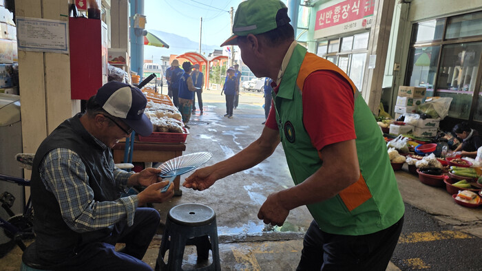 특히 불특정 다수가 모이는 장터의 특성을 고려해 장시간 폭염 노출의 위험성을 설명하고, 주민들에게는 충분한 수분 섭취와 휴식, 그늘 활용 등 생활 속 실천 방안을 안내했으며, 상인들에게는 장시간 영업 시 건강 관리에 각별히 유의할 것을 당부했다.