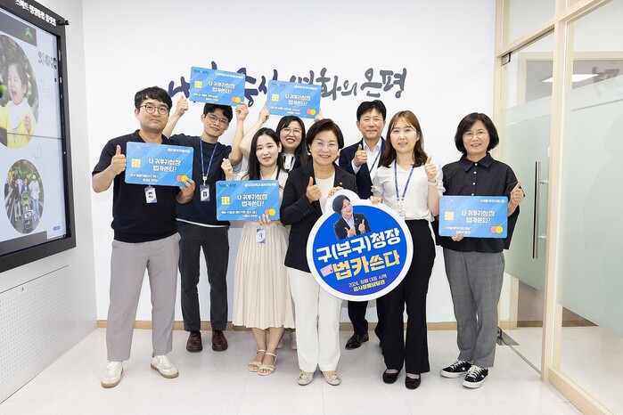 [시민일보 = 이대우 기자] 은평구(구청장 김미경)가 행복한 직장 만들기 및 mz세대 공무원 맞춤형으로 개발한 시책인 ‘나는 구청장 법카 쓴다’를 추진, 전달식을 열고, 선정된 대상자에게 카드를 전달했다.