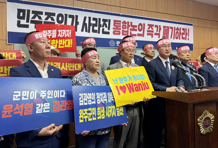 유 의장은 "자치권을 지키고 군민 행복을 위해 끝까지 행정통합 반대 싸움을 하겠다"고 강조했다.