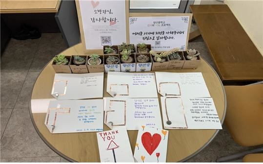 | ▲ 양산중학교 감사편지 사진 |