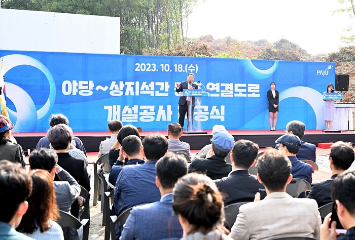 [파주=조영환 기자] 경기 파주시가 18일 파주시 야당동, 상지석동 일원 교통정체 해소 및 광역교통망 연결을 위한 ‘야당~상지석 간 동측 연결도로 개설공사’ 착공식을 개최했다.