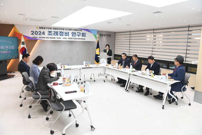 [시민일보 = 여영준 기자] 서울 영등포구의회 의원연구단체인 '조례정비연구회'가 최근 구의회 3층 다목적회의실에서 연구용역 최종보고회를 개최하고 올해 연구 활동을 마무리했다.