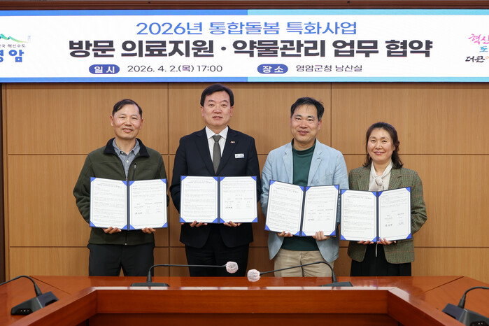 군은 최근 군청 낭산실에서 영암군의사회, 영암군한의사회, 영암군약사회와 ‘통합돌봄 방문의료지원 및 방문약물관리 사업’ 추진을 위한 업무협약을 체결했다.