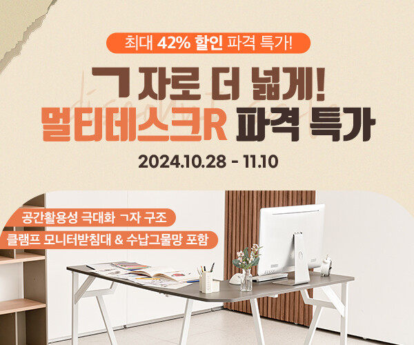 멀티데스크R 1500 1인용컴퓨터책상은 공간 활용성을 극대화하는 ㄱ자 구조로 제작되어 작업 공간을 2개로 분리하여 사용할 수 있기 때문에 작업능률을 향상시킬 수 있는 것이 특징이다. 또 벽면이나 모서리 등에도 다양하게 배치하여 공간을 효율적으로 사용할 수 있다.