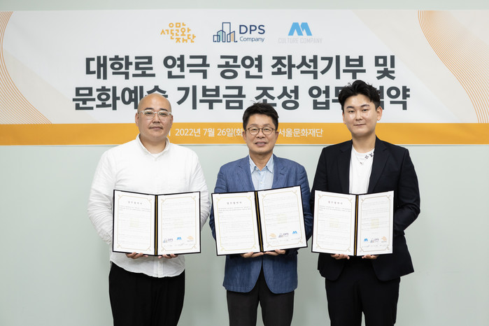 [시민일보 = 이대우 기자] 서울문화재단(대표이사 이창기)은 DPS컴퍼니(대표 노희순), M컬쳐컴퍼니(대표 박태민)와 함께 공연 입장료 수익금 일부를 기부금으로 조성하기 위한 3자 업무협약(MOU)을 지난 26일(화) 서울문화재단 본관에서 체결했다.