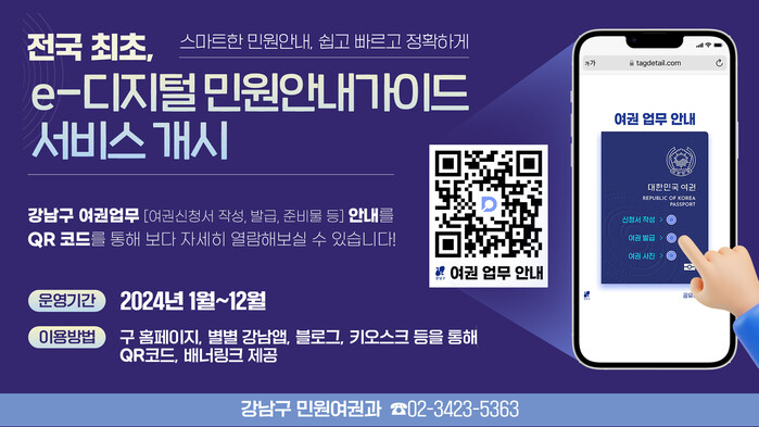 [시민일보 = 이대우 기자] 강남구(구청장 조성명)가 이달부터 ‘e-디지털 민원안내 가이드’ 서비스를 제공한다고 23일 밝혔다.