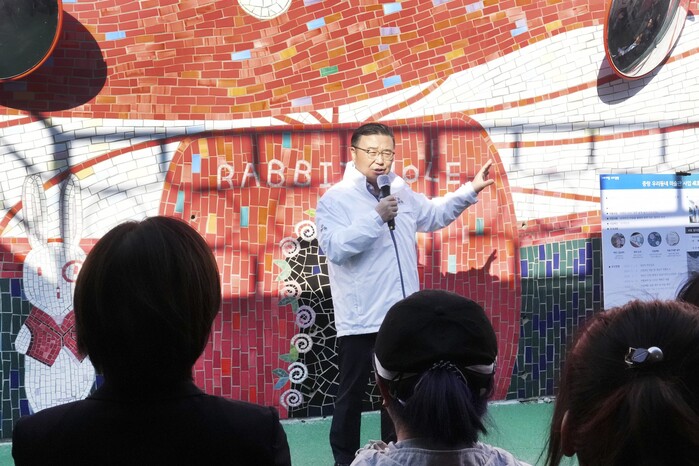 [시민일보 = 여영준 기자] 중랑구(구청장 류경기)가 최근 공공미술 프로젝트 ‘중랑 우리동네 미술관’의 41번째 작품 ‘원더랜드 인 중랑’ 준공식을 개최했다.