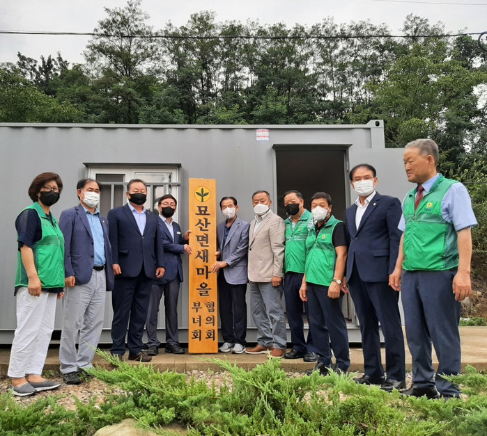 묘산면 새마을협의회는 평소 자선바자회, 코로나19 대비 방역활동, 마을 환경정비를 위한 대청소 등 묘산면 발전을 위해 많은 활동을 펼쳤다. 하지만 새마을협의회의 사무실이 없어 불편을 겪던 와중에 묘산면의 적극적인 관심으로 컨테이너를 개조한 사무실을 마련하게 된 것이다.