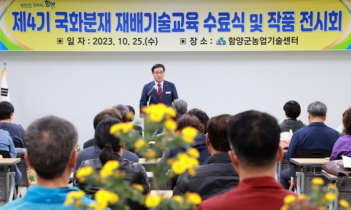 수료식에 참여한 교육생은 “함양으로 귀농해서 국화분재교육이 있다는 소식을 듣게 되어 신청했는데 너무 좋은 교육이었다.”며 “내년에도 꼭 수업에 참석하고 싶다.”라고 말했다.