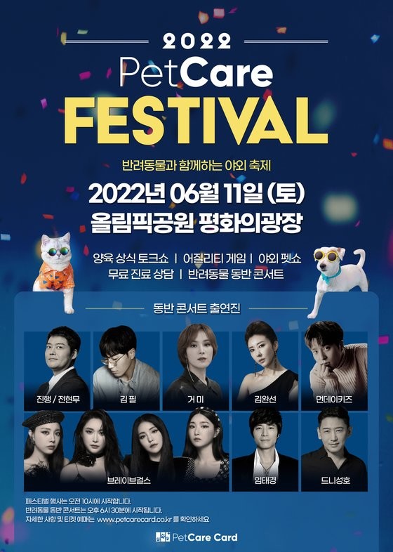 특히, 오후 6시 30분부터는 ▲방송인 전현무의 진행으로 ‘반려동물 동반 콘서트’가 펼쳐진다. 거미, 김필, 김완선, 브레이브걸스, 임태경, 먼데이키즈, 드니성호 등 반려동물을 사랑하는 출연진이 무대에 오를 예정이며, 반려동물을 양육하는 많은 연예인과 인플루언서 등이 함께한다.
